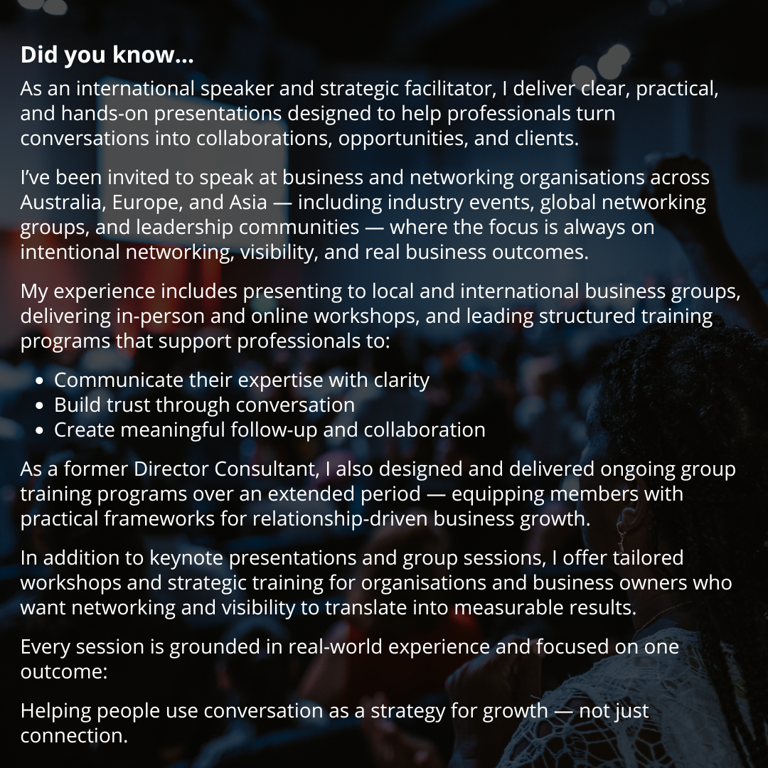 I built multiple businesses and attracted international clients through networking — long before “online networking” became a buzzword — by treating conversations as a business strategy, not a social activity.